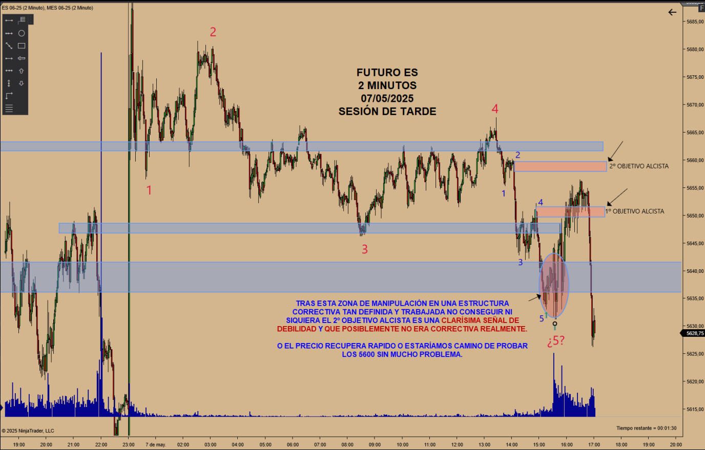 Compradores toman el control con un objetivo mínimo de 5660, pero el hecho de que el precio se quede a medio camino y caiga de forma tan estrepitosa ha desmontado sus planes. Esto puede ser el preludio de un movimiento mucho más bajista, especialmente si no corrige o frena rápidamente este hundimiento.