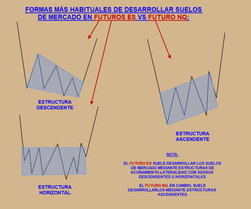 📝 Importante sutileza sobre cómo el Futuro ES y el Futuro NQ suelen desarrollar sus suelos de mercado.